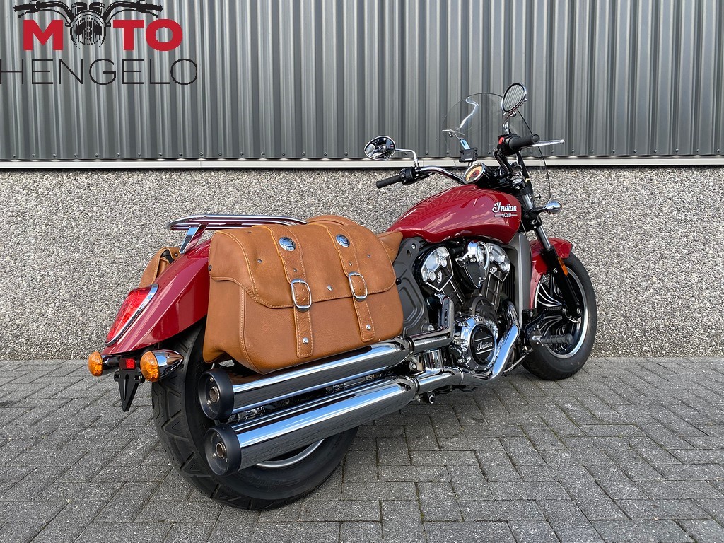Deze knappe scout is voorzien van lederen zadeltassen, bagagerek en windscherm.