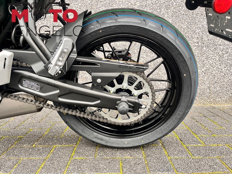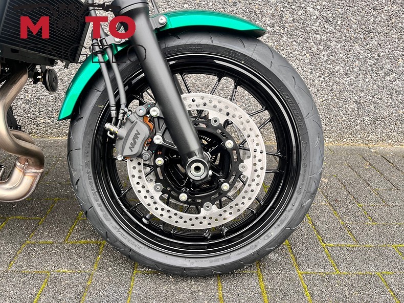 De Z650 RS heeft een comfortabele zithouding die uitnodigt tot lange ritten, met een rechtopstaande positie die lekker relaxed aanvoelt. Toch blijf je dankzij het lichte trellis frame en scherpe stuurgedrag altijd wendbaar en alert, of je nu door de stad scheurt of de bochten pakt op het platteland.