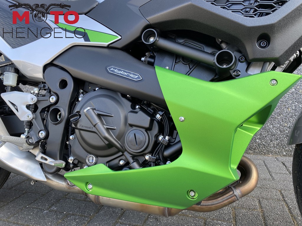 De Z7 Hybrid is Kawasaki's eerste hybride motorfiets. Dit revolutionaire nieuwe model weet de voordelen van een conventionele verbrandingsmotor en elektrische tractiemotor naadloos te combineren. Met drie verschillende rijmodi (waaronder een volledige EV-modus) die elk een geheel eigen karakter hebben, acceleratie uit