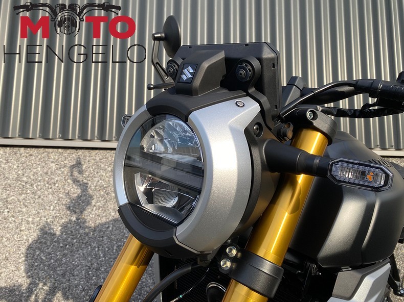 De Suzuki GSX-8T is een opvallende verschijning. De ronde LED-koplamp, geïnspireerd op Suzuki-motorfietsen uit de jaren 60 en 70, is voorzien van geïntegreerde contourverlichting. Karaktervol design met een moderne twist: de iconische 16,5-liter tank, goudkleurige voorvork en luxe afwerking maken het plaatje compleet.
