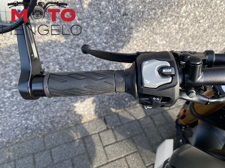 Met quickshifter up en down, multifunctioneel 5-inch kleuren-TFT-scherm, korte uitlaat, bar-end spiegels en Tuck-and-Roll zadel. Een uitgebreid Intelligent Ride System-elektronicapakket met drie rijmodi.