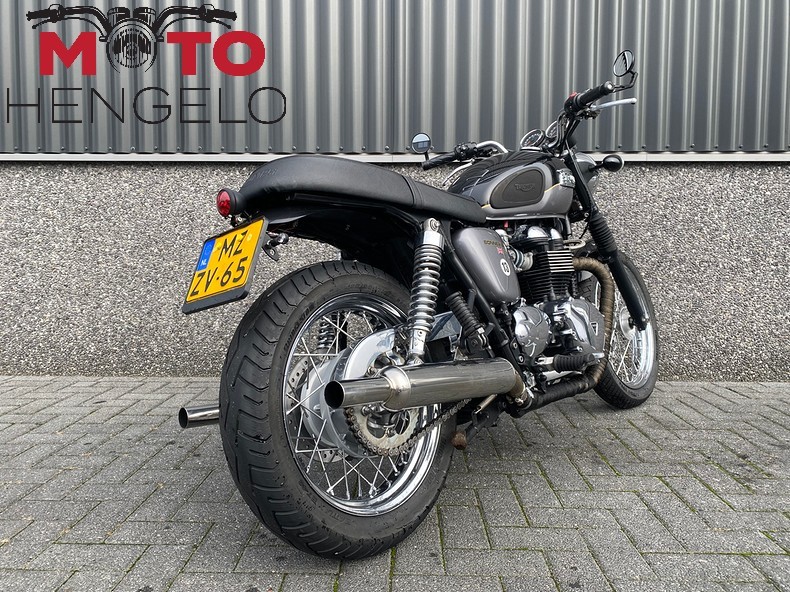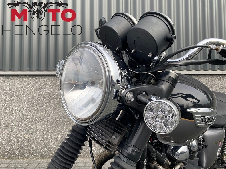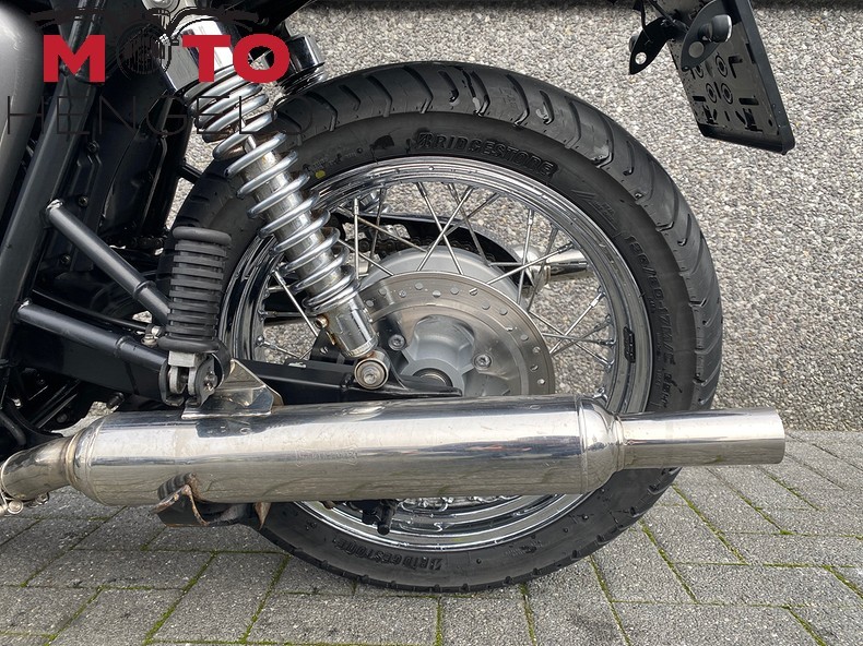 Chique en licht verbouwde T100. Originele delen zoals spatborden, zadel en uitlaat zijn aanwezig.