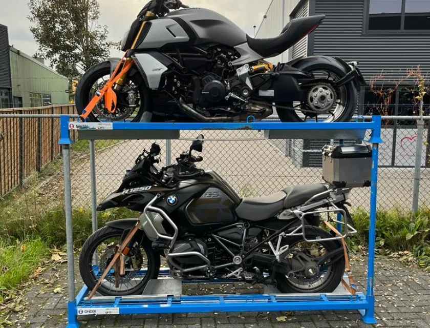 - Je motorfiets en overige bagage lever je vooraf al in voor transport.