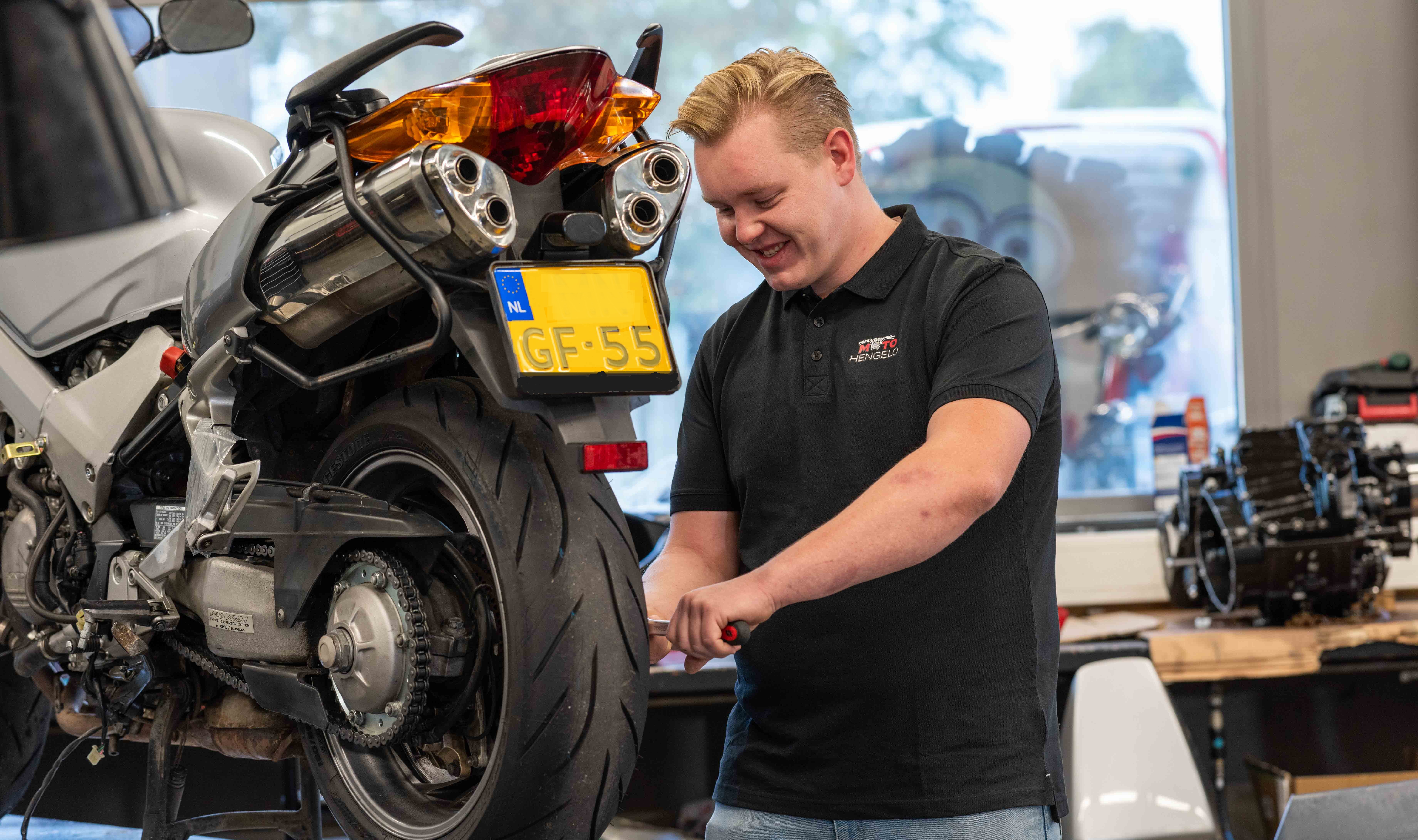 Neem voor vragen en het maken van een afspraak contact op met Gert Jan, bij voorkeur per e-mail: werkplaats@motohengelo.nl.